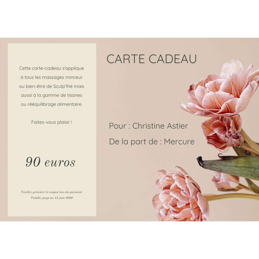 Carte cadeau 90 euros pour massage